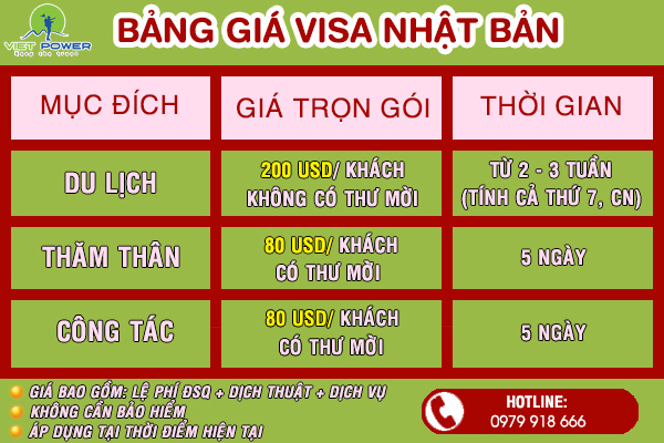 Bảng giá visa Nhật Bản của Visa Vietpower